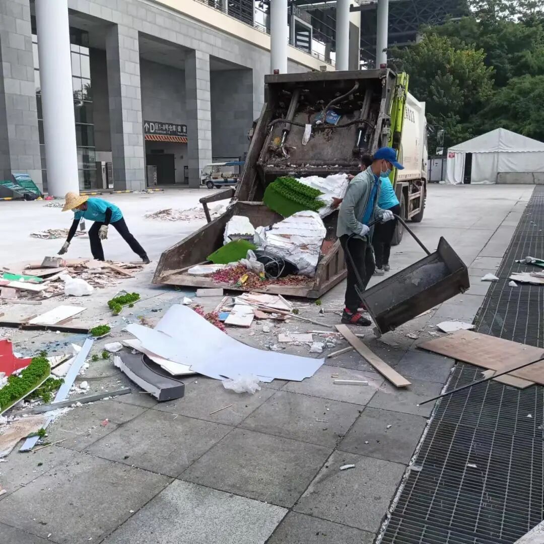 在东博会展览结束后,万怡工作人员对会展展馆外所有区域进行全面细致的清扫,认真的清除遗留油污、杂物等,确保会展环境干净明亮。